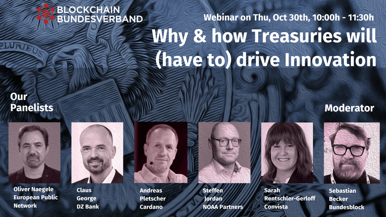 Und wir werden auch auf unsere im September veröffentliche Bundesblock-Studie zu diesem Thema eingehen – weitere Information dazu finden sich hier: https://bundesblock.de/studie-blockchain-im-corporate-treasury-der-status-quo/
