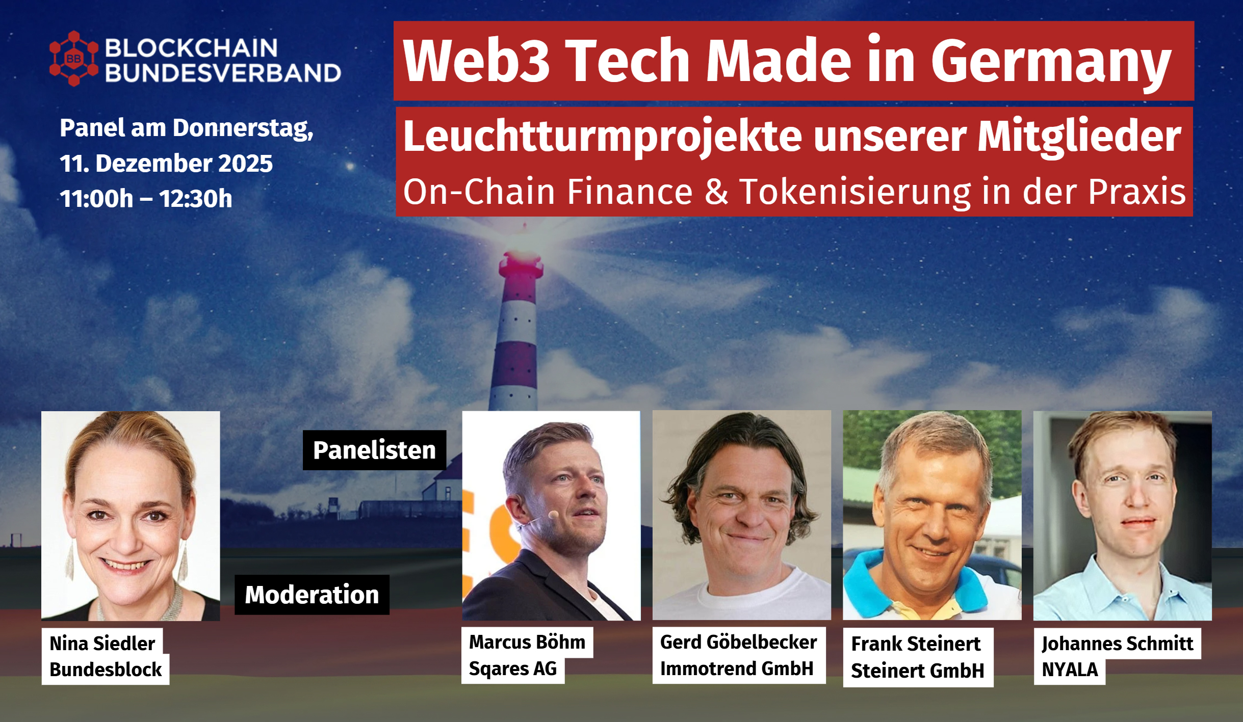 Der Bundesblock wird in dieser neuen Veranstaltungsreihe führende Technologie-Entwicklungen im Blockchain- und Web3-Bereich aus den Reihen unserer Mitglieder vorstellen.