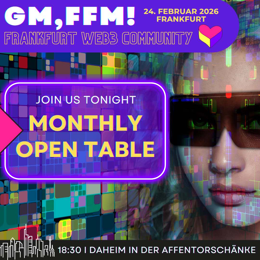 Der erste Frankfurter Web3-Community Stammtisch. Offen für alle, die sich für Web3 begeistern und interessieren und Lust auf persönlichen Austausch in entspannter, klassischer Frankfurter Atmosphäre haben.